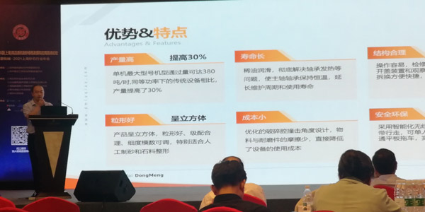 現(xiàn)場主題演講環(huán)節(jié),上海東蒙高級應(yīng)用工程師嚴(yán)剛受邀現(xiàn)場發(fā)表《履帶移動沖擊式破碎站在市場上的應(yīng)用》主題演講。針對東蒙履帶移動沖擊式破碎站產(chǎn)品特點及優(yōu)勢、國內(nèi)外機(jī)制砂市場需求特點及未來發(fā)展趨勢作了系統(tǒng)的專業(yè)分析及重點闡述。