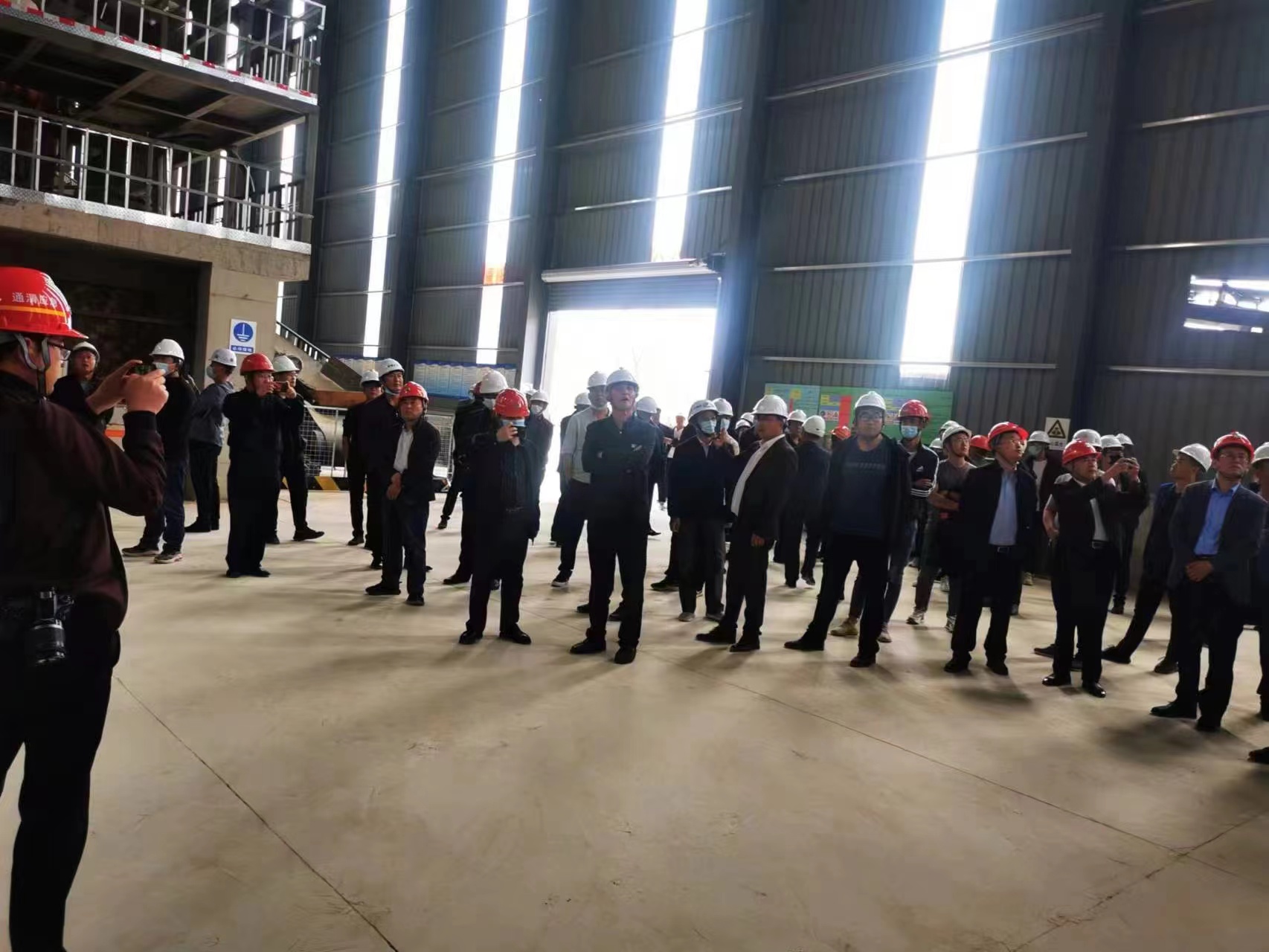 上海東蒙西北營銷中心負責(zé)人潘總在車間現(xiàn)場為觀摩嘉賓作該產(chǎn)線概況介紹