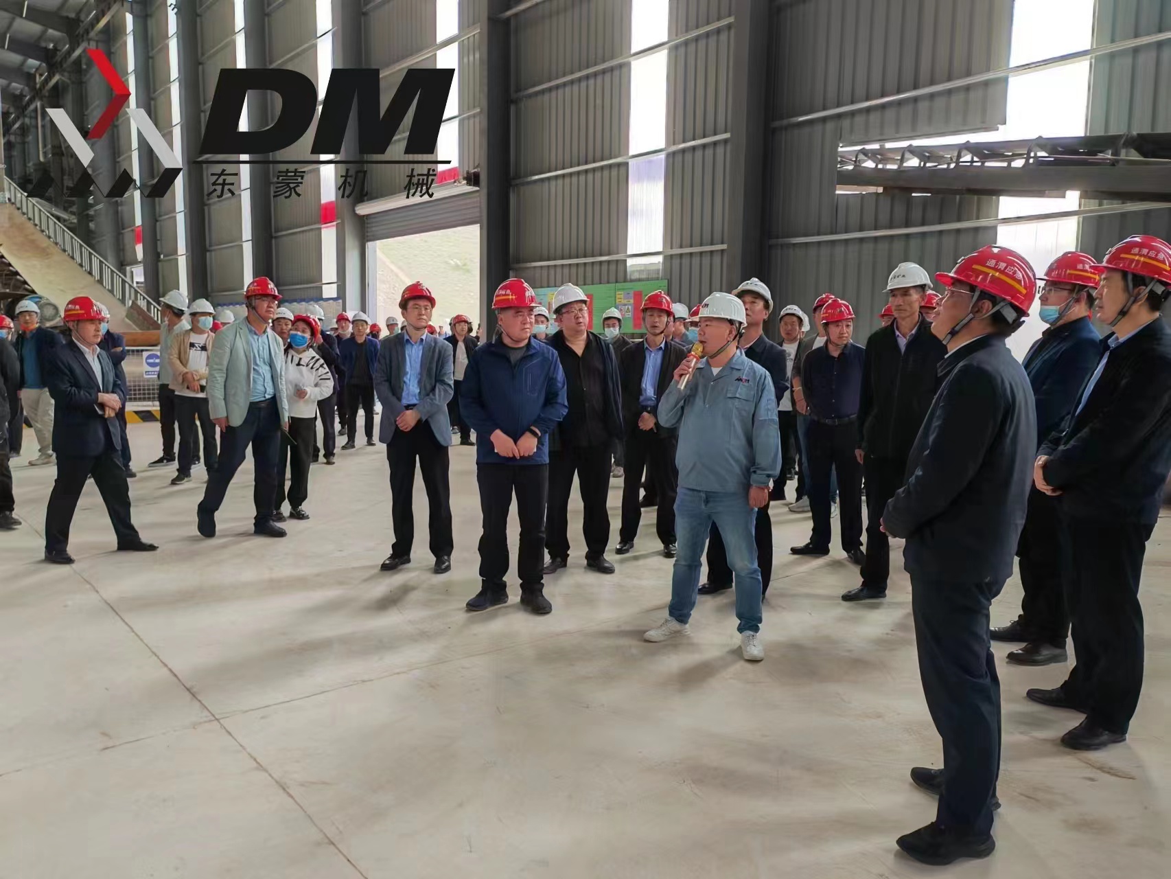 在生產(chǎn)線現(xiàn)場,上海東蒙西北營銷中心負責(zé)人潘總首先對市局一行領(lǐng)導(dǎo)的到來表示誠摯的歡迎,接著潘總從項目概況、項目目前的建設(shè)進度、該干濕合用精品砂石骨料生產(chǎn)線工作流程及特點優(yōu)勢、后期規(guī)劃和綠色礦山建設(shè)發(fā)展方面作了簡要匯報。